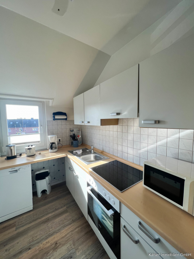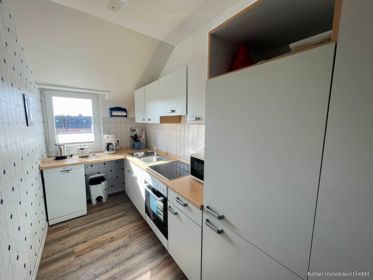 Diese zentral gelegene 2,5-Zimmer-Eigentumswohnung befindet sich im Dachgeschoss eines Apartmenthauses mit 16 Wohneinheiten und verfügt über ca. 49,69 m² Wohnfläche. Ein Lebensmittelgeschäft und ein Bäcker befinden sich direkt im Erdgeschoss des Apartmenthauses. Der Kurpark, der Grünstrand und die Familienlagune befinden sich ebenfalls in unmittelbarer Nähe. In ca. 10-15 Gehminuten erreichen Sie die beliebte Alleestraße mit diversen Cafés, Restaurants und Einkaufsmöglichkeiten. Ebenso das neu gestaltete Schwimmbad "Meerzeit" und den Museumshafen.