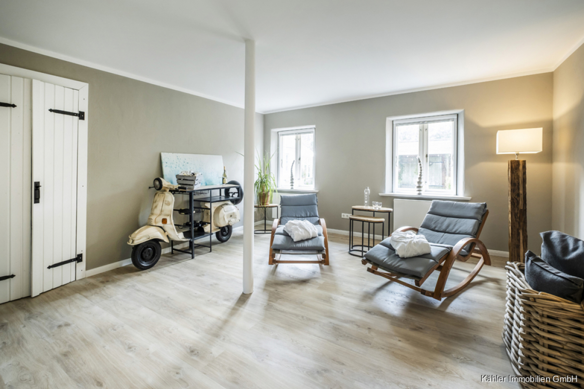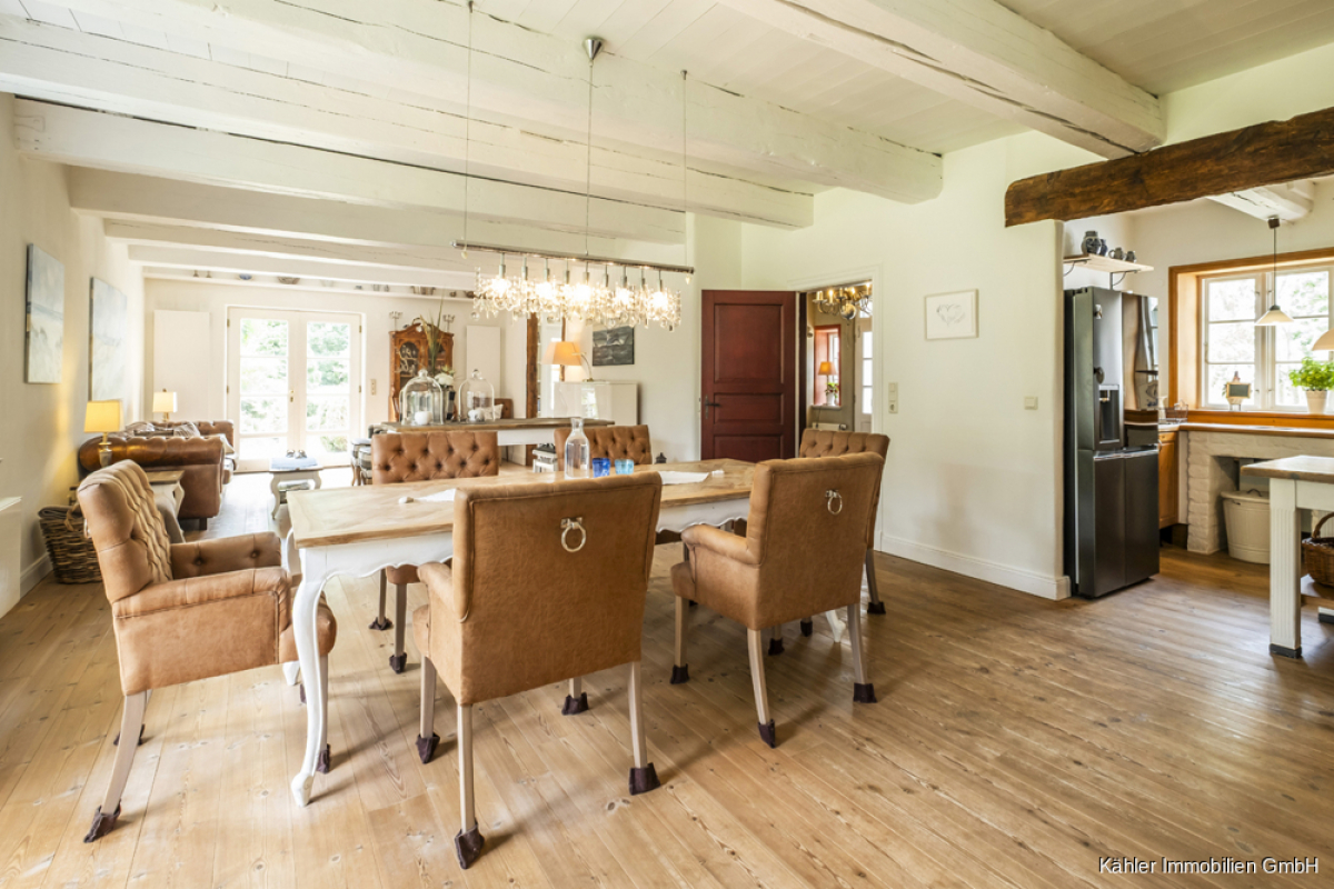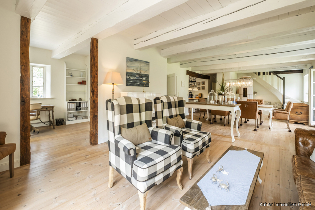 Inmitten einer idyllischen Naturlandschaft präsentiert sich dieses außergewöhnliche Reetdachhaus als stilvolles Refugium für Menschen mit Sinn für Ästhetik, Ruhe und Exklusivität. Auf einem beeindruckenden Grundstück von ca. 10.818 m² gelegen, bietet die Immobilie mit ca. 500 m² reiner Wohnfläche (exkl. Terrassen) Raum für zwei großzügige Wohneinheiten – ideal für Mehrgenerationenwohnen, Wohnen & Arbeiten oder zur Vermietung einer Einheit als Ferienimmobilie. Eine baurechtliche Genehmigung für eine dritte Wohneinheit liegt bereits vor.
