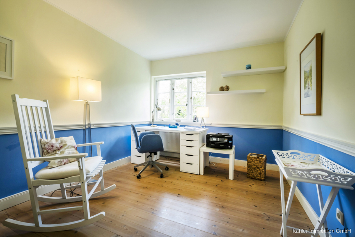 Im Erdgeschoss befinden sich zudem zwei Schlafzimmer, ein modernes Tageslichtbad sowie ein helles Büro mit Blick ins Grüne – ideal für das Arbeiten im Homeoffice.