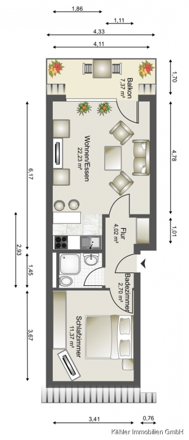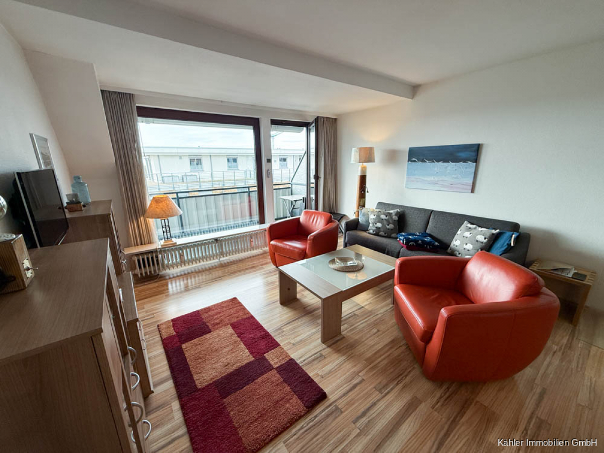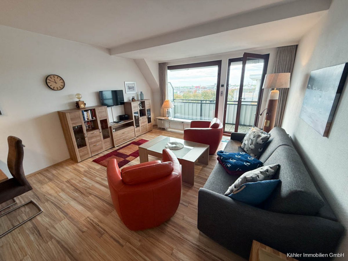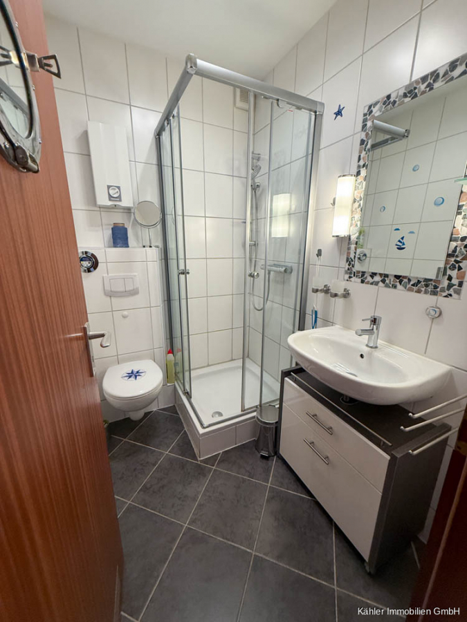 Diese modernisierte 2-Zimmer-Wohnung mit Balkon befindet sich im Dachgeschoss einer im Jahr 1983 erbauten Wohnanlage und bietet eine Wohn- und Nutzfläche von ca. 48,7 m². Die angegebene Fläche umfasst sowohl den Balkon als auch den praktischen Abstellraum im Keller des Gebäudes. Die Wohnung befindet sich auf Eigenland und wurde bisher sehr lukrativ als Ferienwohnung vermietet. Sie besticht durch ihre attraktive Lage in unmittelbarer Nähe zum Büsumer Hafen und bietet einen herrlichen Blick auf das Meer. Das beliebte Zentrum von Büsum ist in nur etwa drei Minuten fußläufig erreichbar. Hier finden Sie eine Vielzahl an Geschäften, Restaurants und Cafés, während auch der Hauptstrand und das Schwimmbad bequem zu Fuß erreicht werden können.