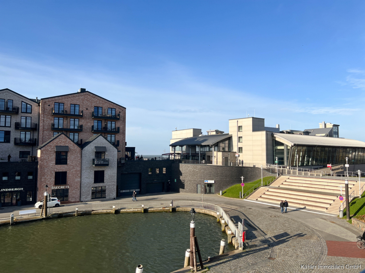 Mit einer Wohnfläche von ca. 135,33 m², verteilt über zwei Ebenen, bietet die Wohnung ein großzügiges Raumgefühl, das von Licht und Offenheit geprägt ist. Im ersten Obergeschoss befindet sich der große Wohn- und Essbereich mit integrierter, moderner Einbauküche. Mit rund 31 m² ist dieser Bereich der Mittelpunkt des Wohnens – hell, offen und mit großen Fensterflächen, die den Blick auf den Hafen und die Nordsee freigeben.