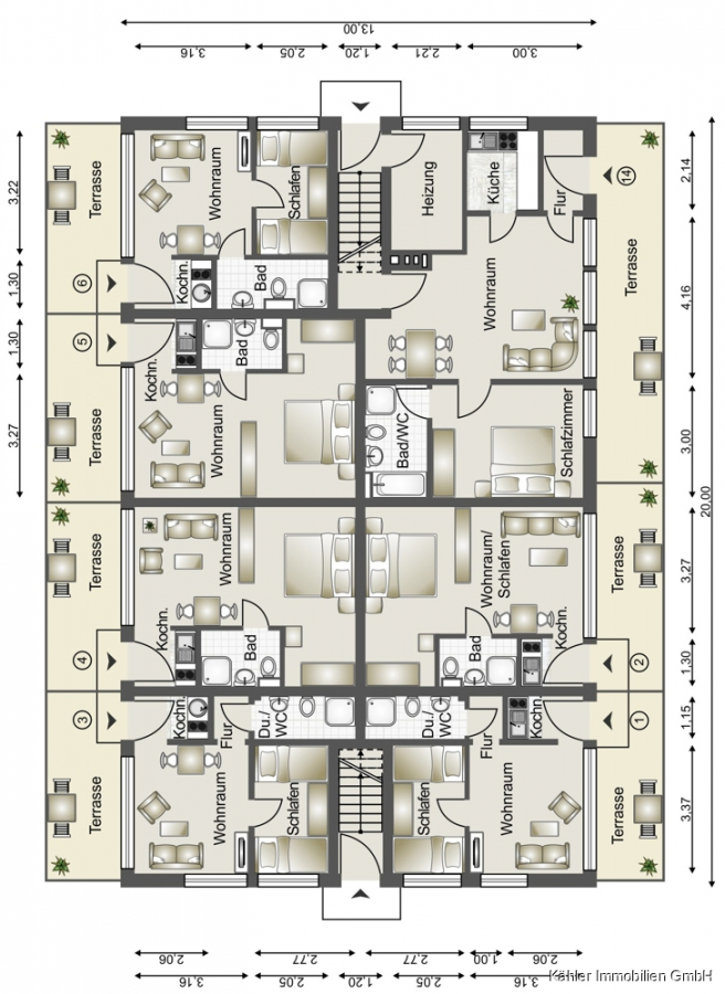 •Jede Wohnung mit Balkon, Loggia oder Terrasse