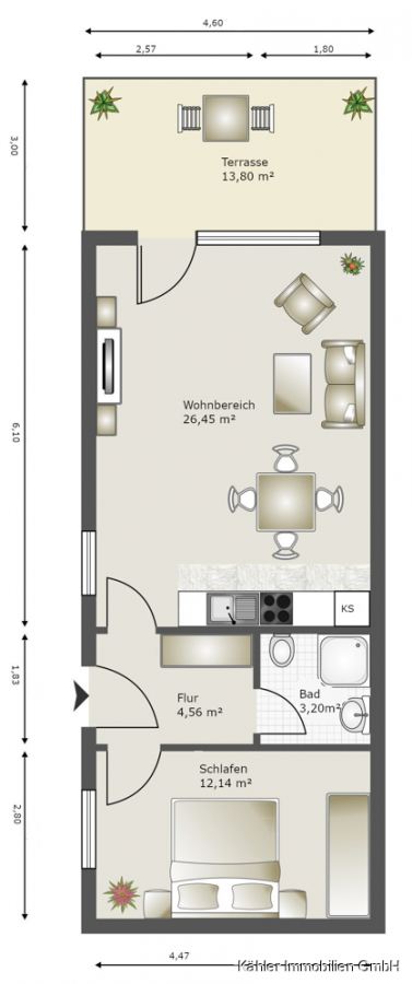 Das Objekt wird vollständig möbliert verkauft – das vorhandene Inventar ist im Kaufpreis enthalten und ermöglicht eine sofortige Nutzung.