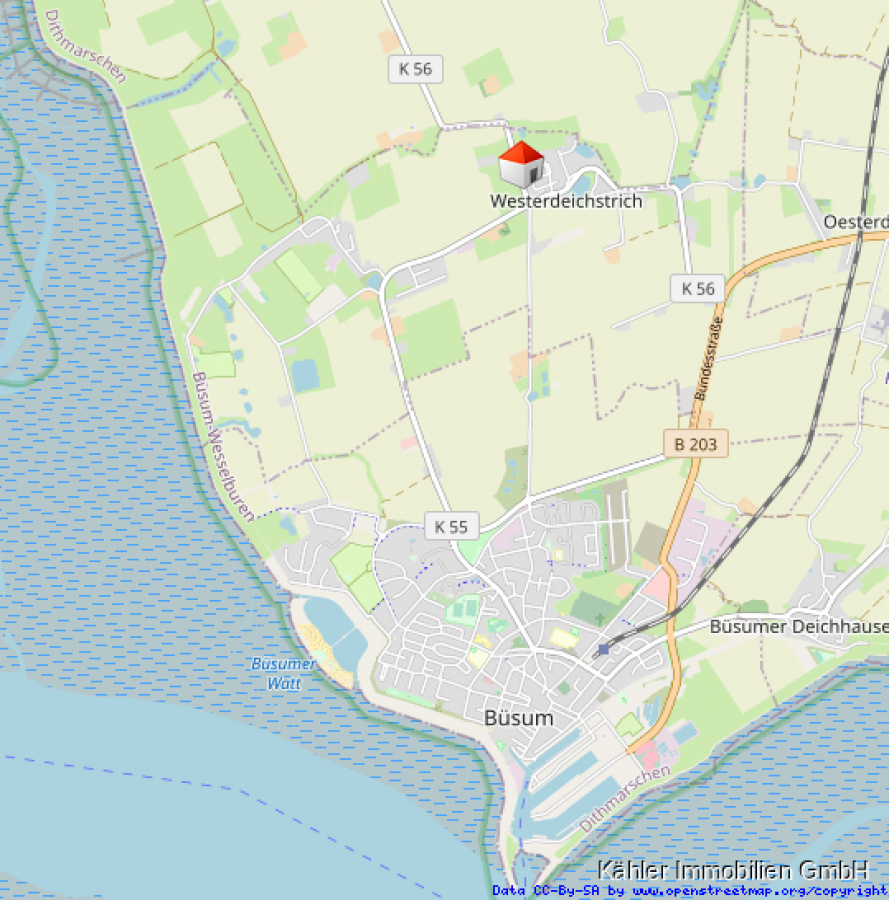 Das Gebäude mit seinen insgesamt 8 Wohneinheiten befindet sich in einer ruhigen Wohngegend im Ortsteil Westerdeichstrich in direkter Feldrandlage.
