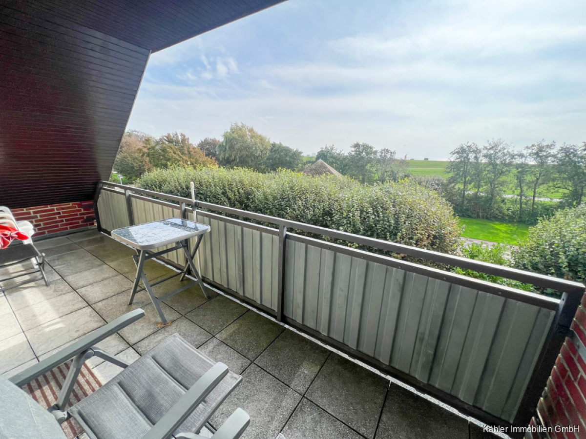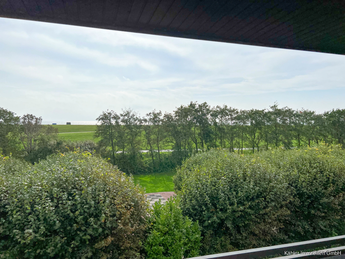 Diese helle 2-Zimmer-Wohnung mit unverbaubarem Meerblick befindet sich in einer Sackgasse in erster Baureihe direkt am Wohlfühlpark und Büsumer Gründeich.