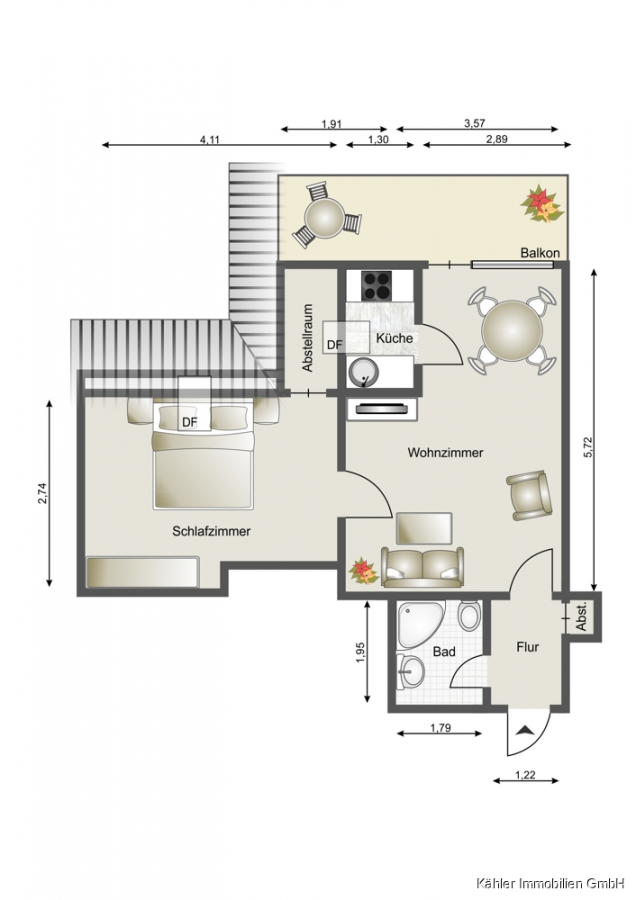 Für die vom Verkäufer oder Dritten übermittelten Angaben übernimmt die Firma Kähler Immobilien GmbH keine Gewähr. Irrtümer bei Beschreibung und Zwischenverkauf vorbehalten. Eine Exposéhaftung ist ausgeschlossen. Die genannten Wohn- und Nutzflächen können von der DIN-Wohnflächenberechnung abweichen. Sämtliche Maße und Daten sind vor Ort zu prüfen.