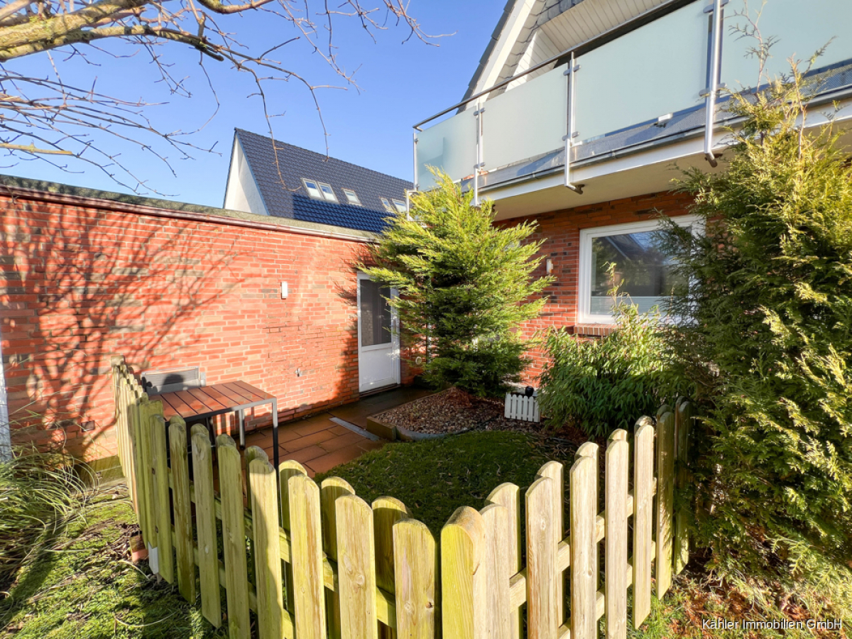 Zudem führt Sie der Flur in einen weiteren, kleinen Eingangsbereich mit Garderobe. Hierüber gelangen Sie in ein großes Wohn/- Schlafzimmer und in die separate, geräumige Küche mit Essbereich. Das helle Wohn/-Schlafzimmer mit angrenzendem Duschbad bietet einen Zugang zur großen Südterrasse mit Blick Richtung Deich.