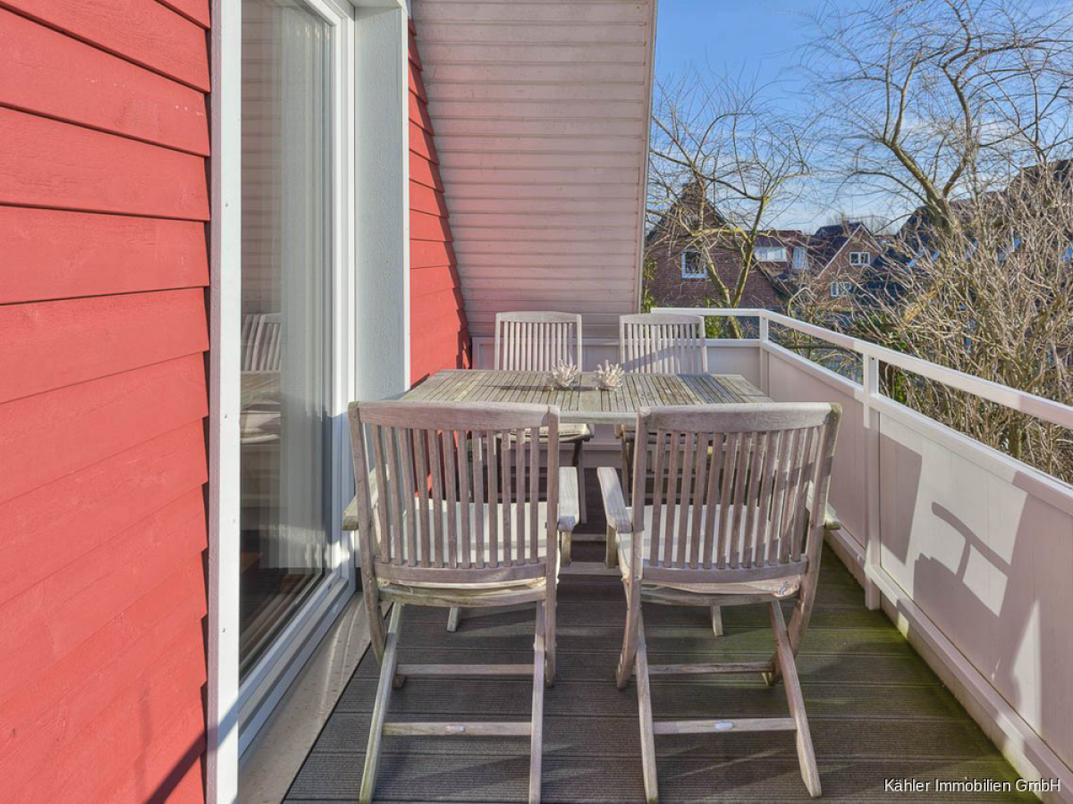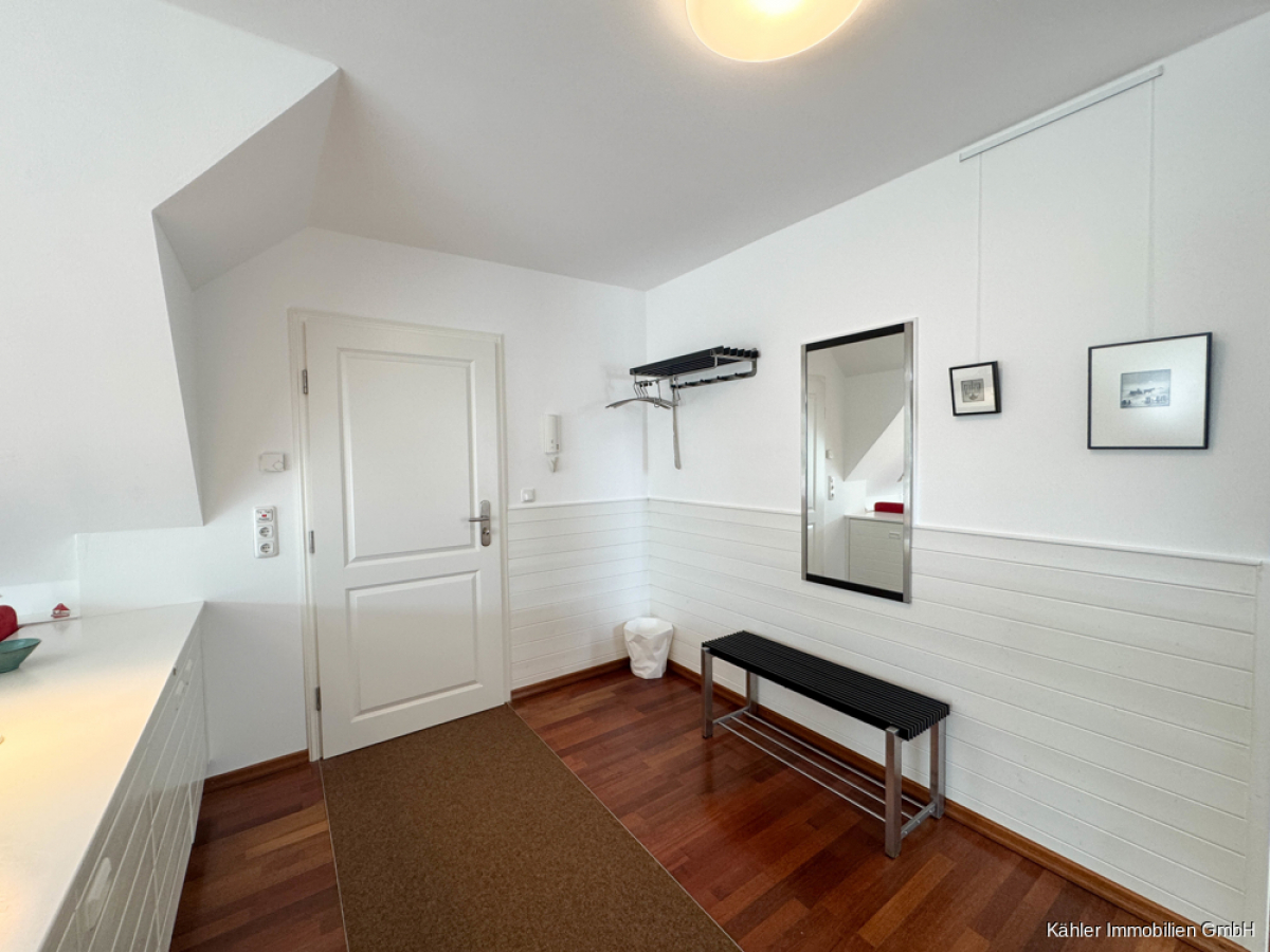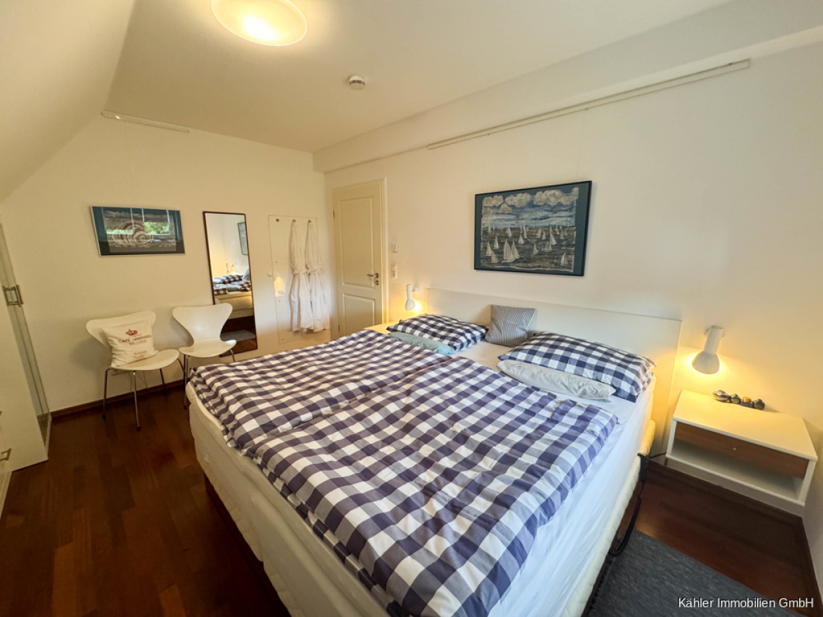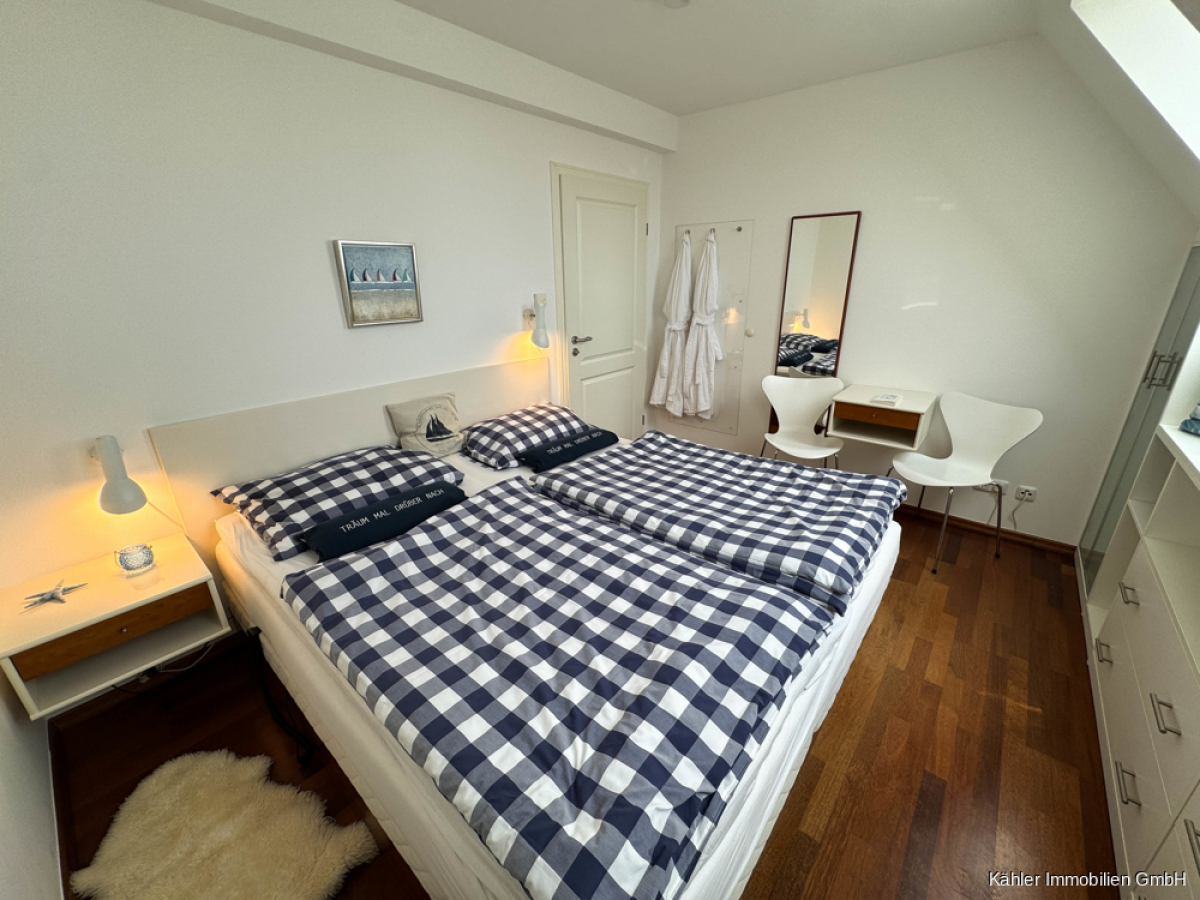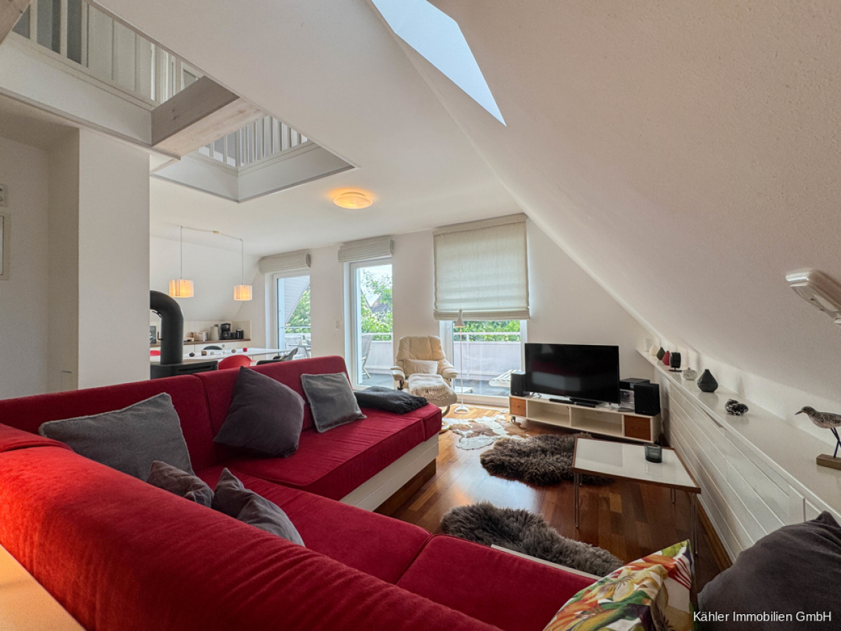 Diese moderne, im skandinavischen Stil eingerichtete, ca. 101,18 m² große 3-Zimmer-Wohnung befindet sich im 1. Obergeschoss eines Schwedenhauses in Büsum.
