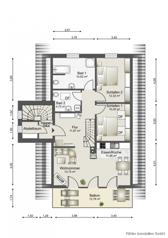 Das geplante Hausgeld beläuft sich auf ca. 360,00 € monatlich. In dem Hausgeld nicht enthalten sind die Heiz- und Warmwasserkosten. Diese werden nach dem tatsächlichen Verbrauch abgerechnet.