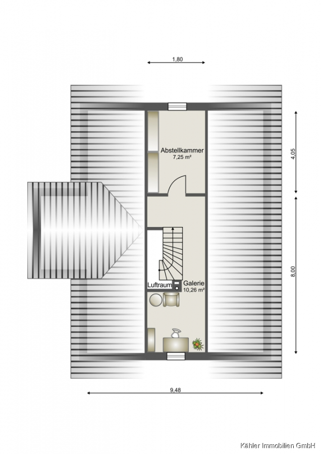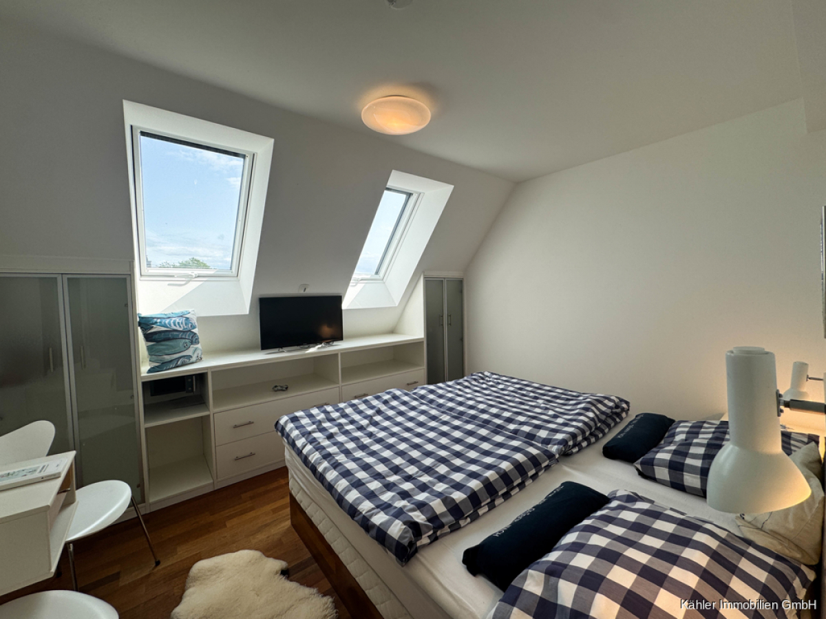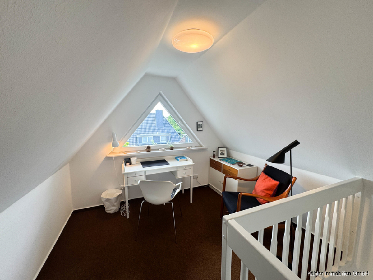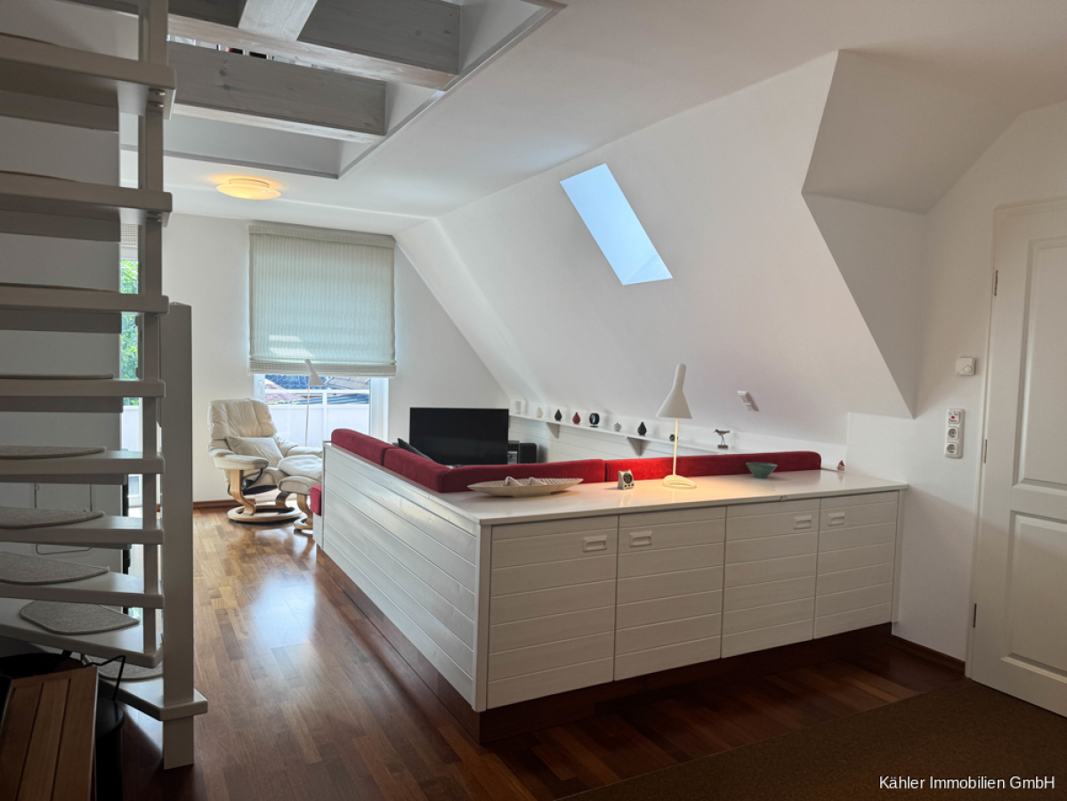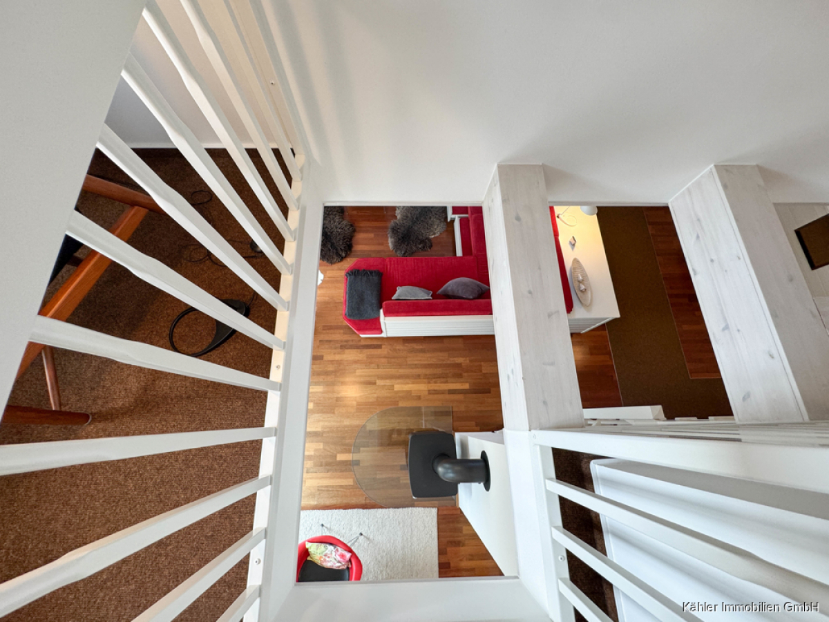 Die Galerie, welche über eine in der Wohnung liegende Treppe zu erreichen ist, bietet einen Schreibtisch, an dem man ideal von zu Hause aus arbeiten kann.