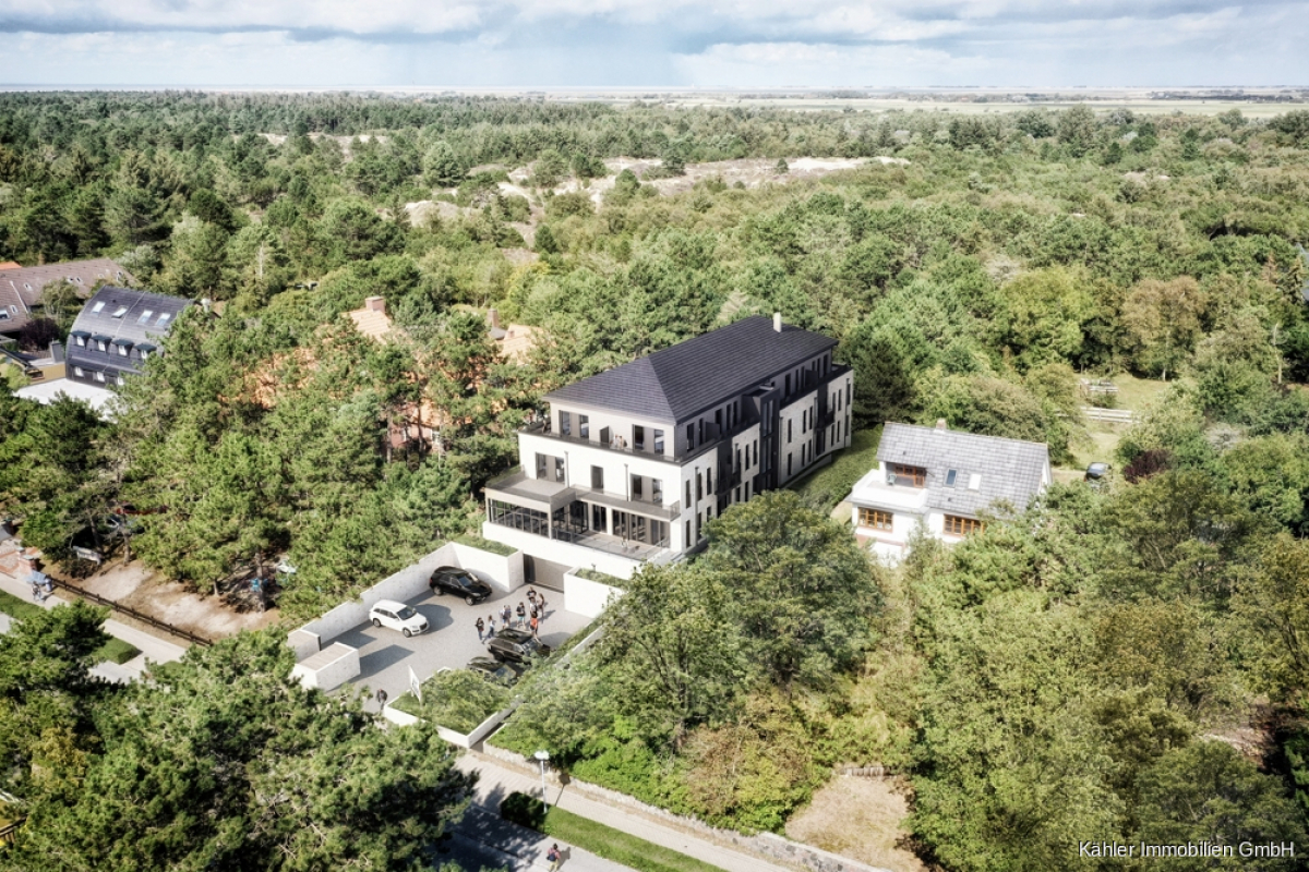 Ein zusätzliches Alleinstellungsmerkmal bietet der geplante Saunabereich im Erdgeschoss, zur ruhigen Gartenseite ausgerichtet mit unverstelltem Blick in den Dünenwald – ein attraktives Angebot für Hotelgäste, das sich harmonisch in das regionale Erholungskonzept einfügt.