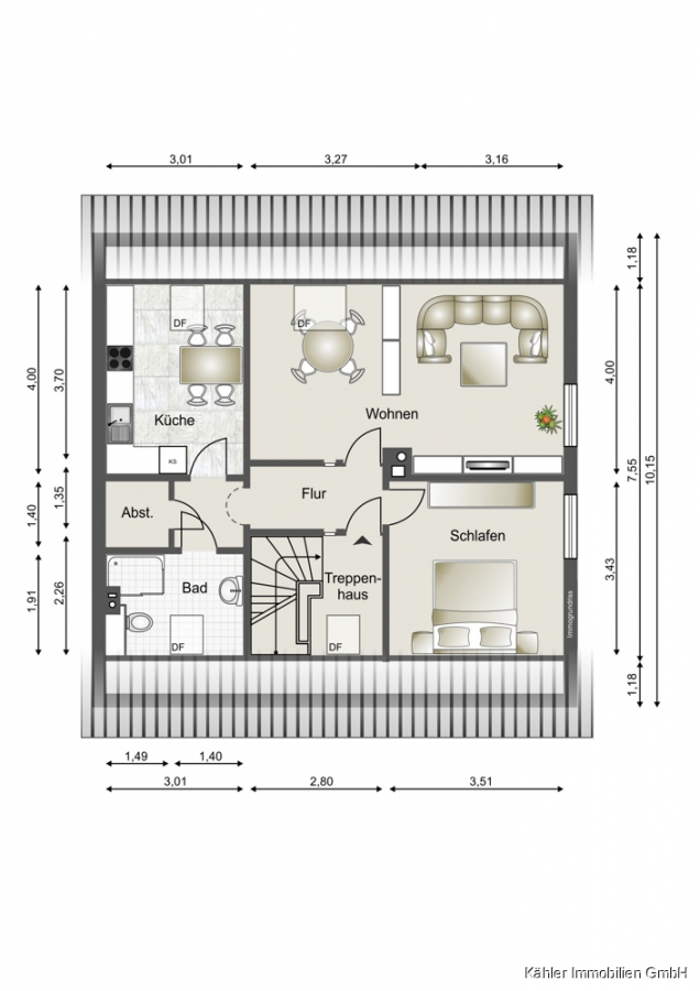 Ein zusätzlich zugeordneter Abstellraum mit ca. 12,12 m² Nutzfläche befindet sich auf dem Spitzboden. Ein eigener Kfz-Stellplatz rundet das Gesamtangebot ab.