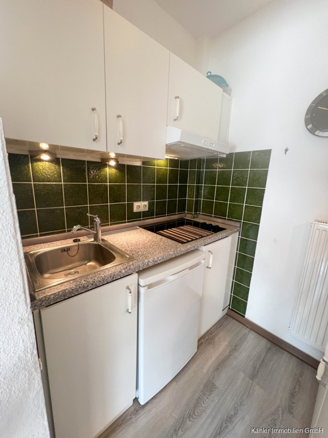 Die Wohnung verfügt über einen ca. 19,37 m² großen Wohn- und Essbereich. Dort angrenzend befindet sich die halboffene Einbauküche.