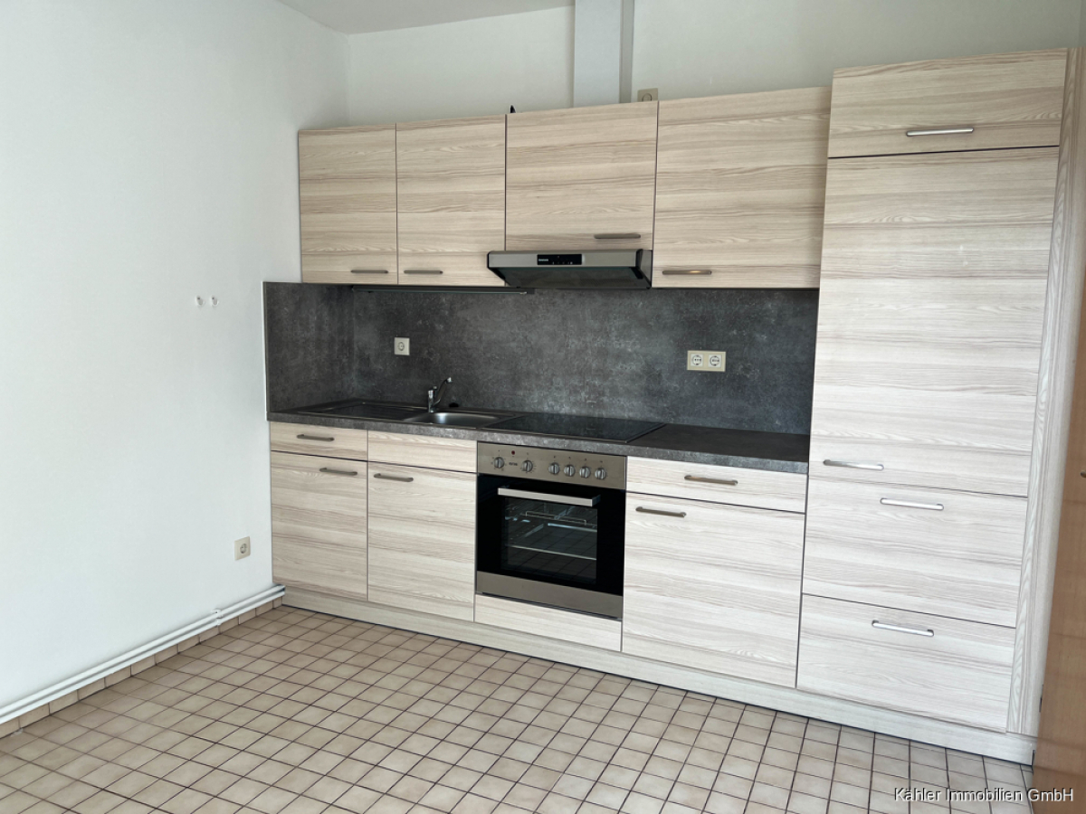 Der ca. 21,30 m² große Wohn- und Essbereich verfügt über ausreichend Platz und grenzt unmittelbar an die gepflegte Einbauküche an.