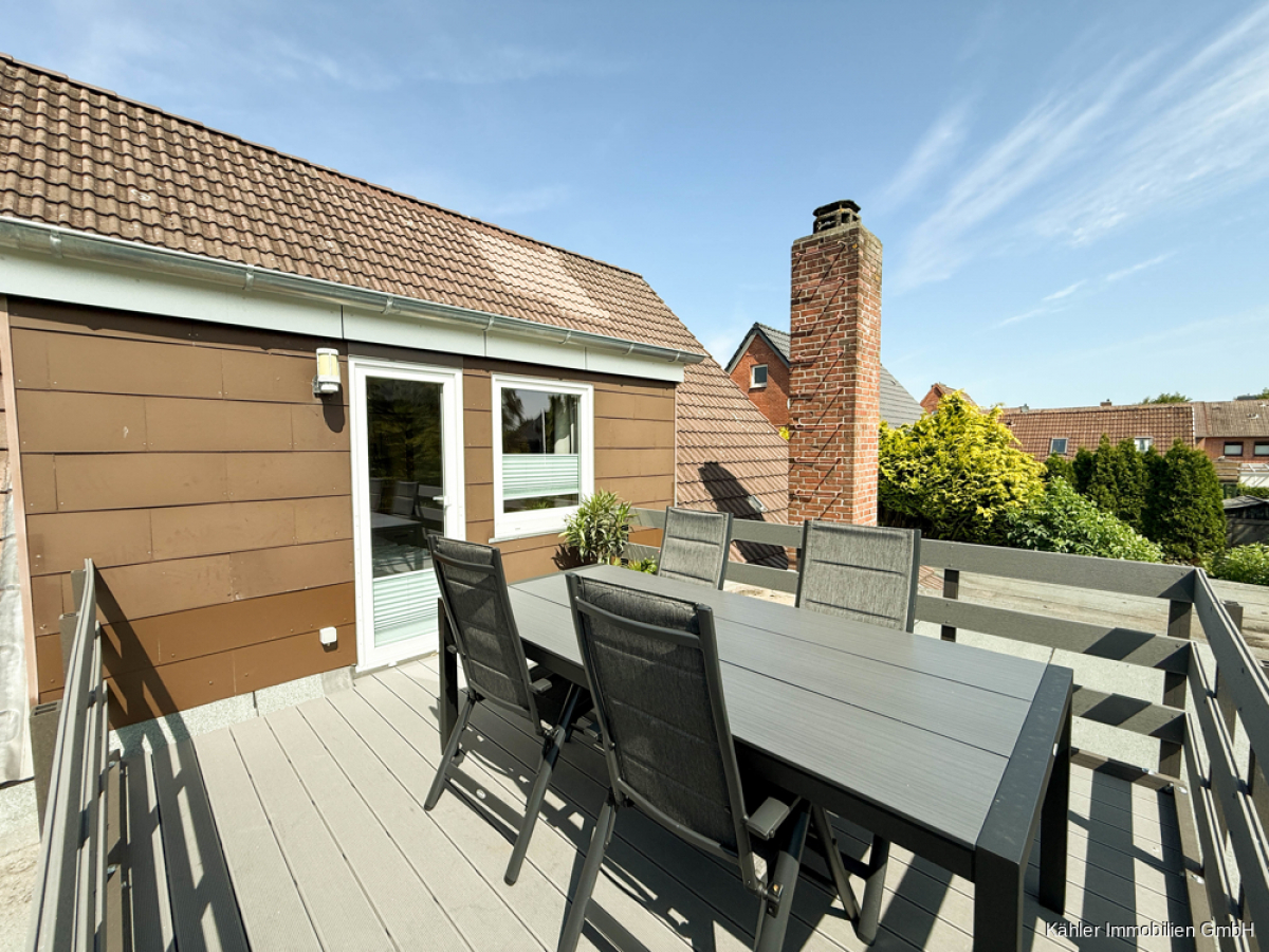 Diese 3-Zimmer- Wohnung im Dachgeschoss erreichen Sie über einen gemeinsamen Eingangsbereich im Erdgeschoss. Ein Flur mit Platz für eine Garderobe führt in einen Wohnraum mit moderner Küchenzeile und Zugang zu einem Balkon. Ein geräumiges Schlafzimmer bietet einen Zugang zu einer ca. 10 m² großen Dachterrasse in Südostlage. Ein weiteres Schlafzimmer und ein modernes Tageslichtduschbad vervollständigen die Wohnung.