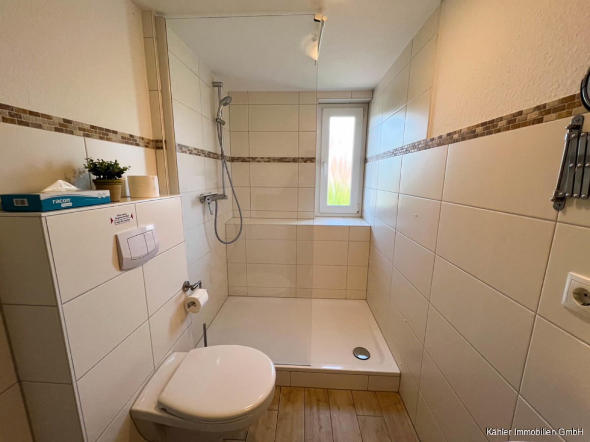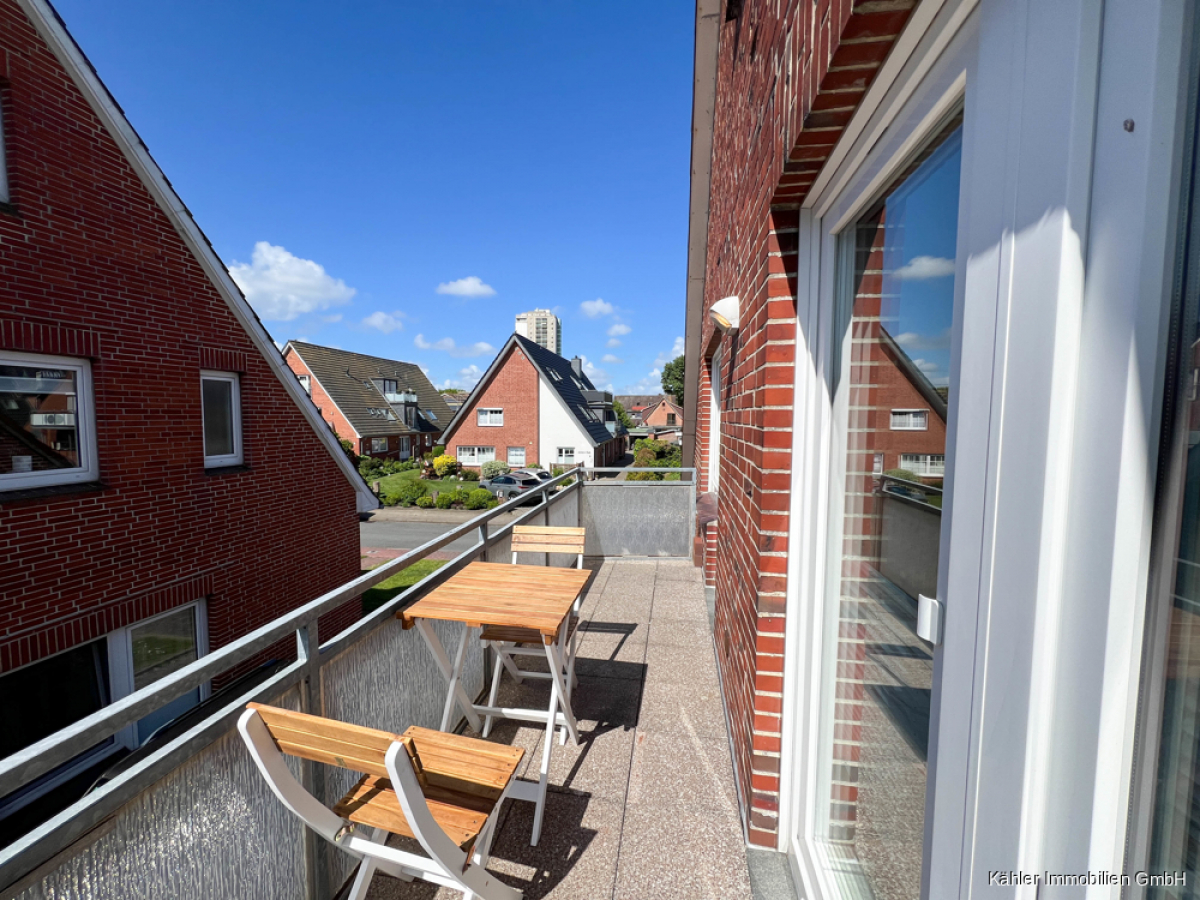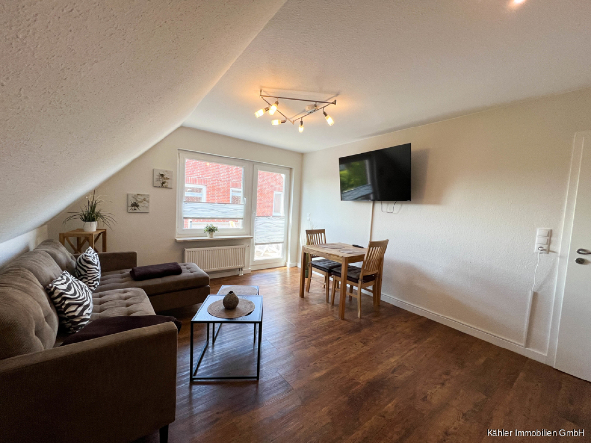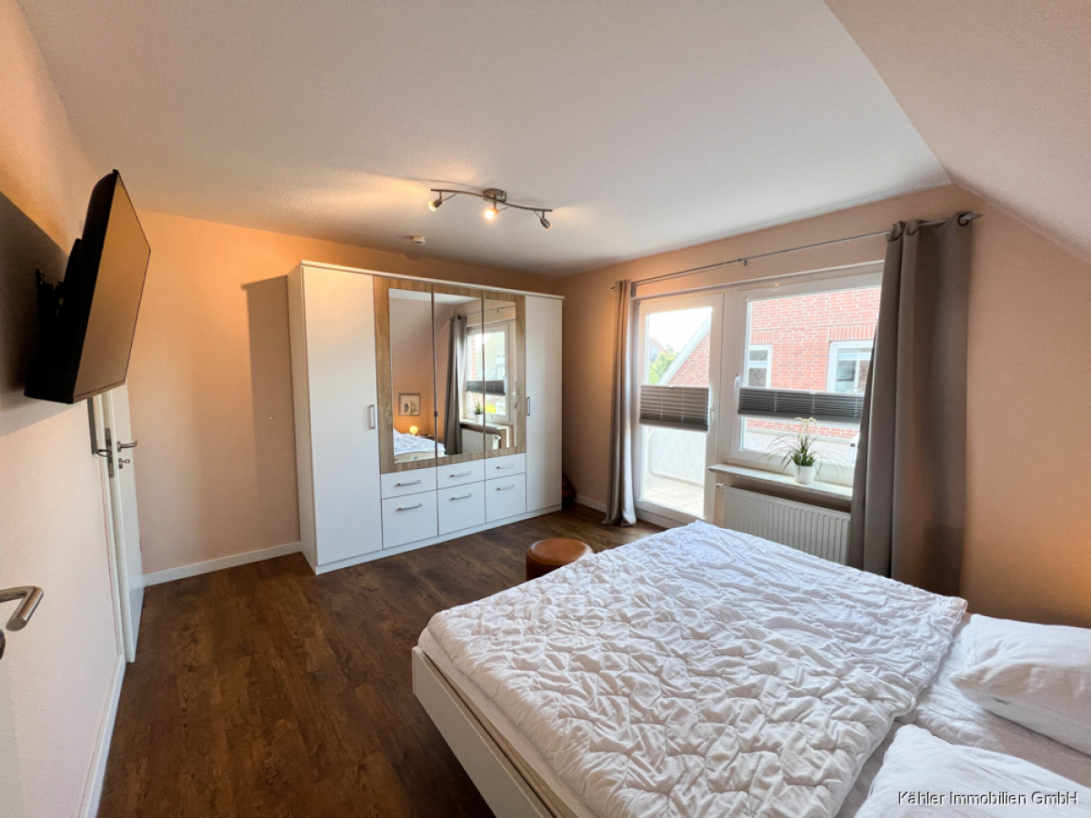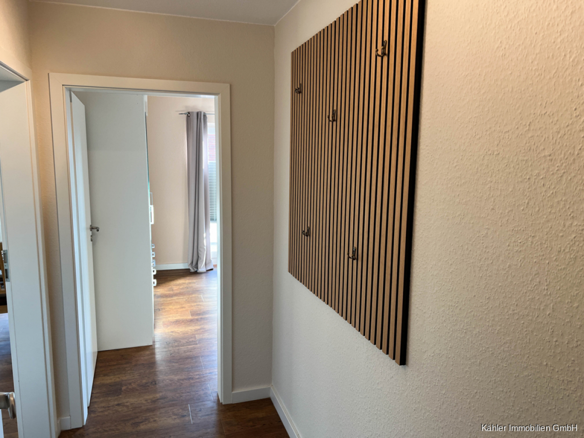 Über einen gemeinsamen Eingang im Erdgeschoss führt Sie eine Treppe in das Dachgeschoss zu der Wohnungseingangstür. Hier bietet die Wohnung einen kleinen Flur mit Platz für eine Garderobe, einen Wohnraum mit offener Küchenzeile und Zugang zum Südbalkon und ein Schlafzimmer mit einem Tageslichtduschbad. Auch das Schlafzimmer bietet einen Zugang zu dem sonnigen Südbalkon.
