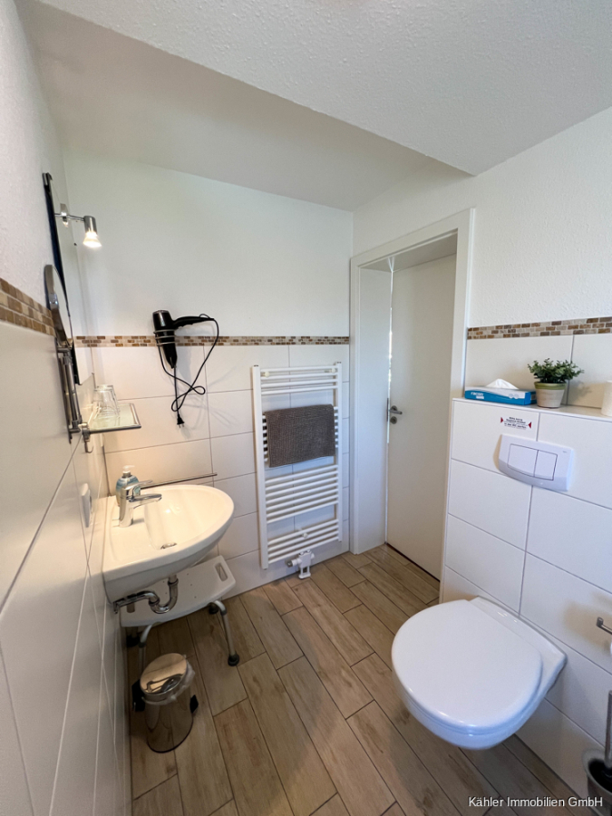 Zu der Wohnung gehört ein eigener Abstellraum auf dem Dachboden des Apartmenthauses, dieser ist über eine Dachbodentreppe im Flur der Wohnung erreichbar. Zudem ist ein eigener, zugeordneter KFZ-Stellplatz und ein Gemeinschaftsfahrradraum Bestandteil des Objekts.