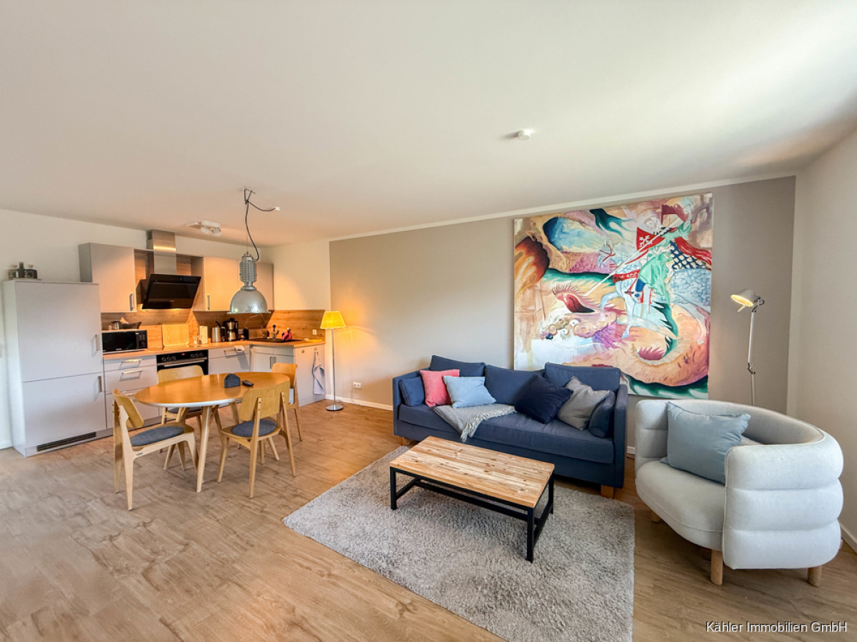Diese moderne und gehoben gestaltete 2-Wohnung verfügt über ca. 62,44 m² Wohnfläche und befindet sich im Erdgeschoss einer Wohnanlage im Zentrum von Büsum.